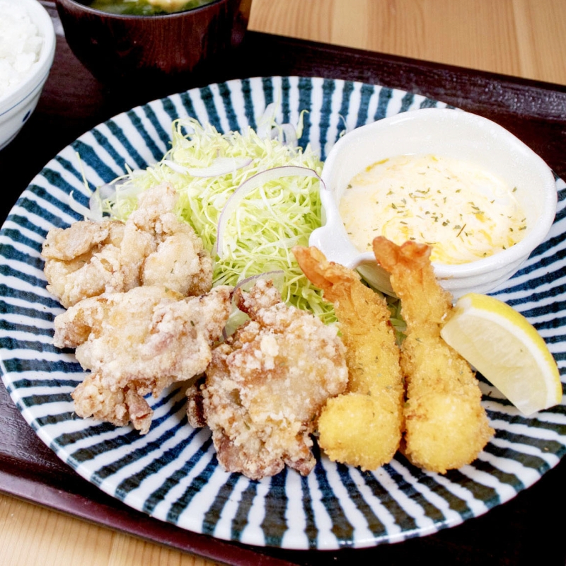 ぷりぷり海老フライと唐揚げ定食